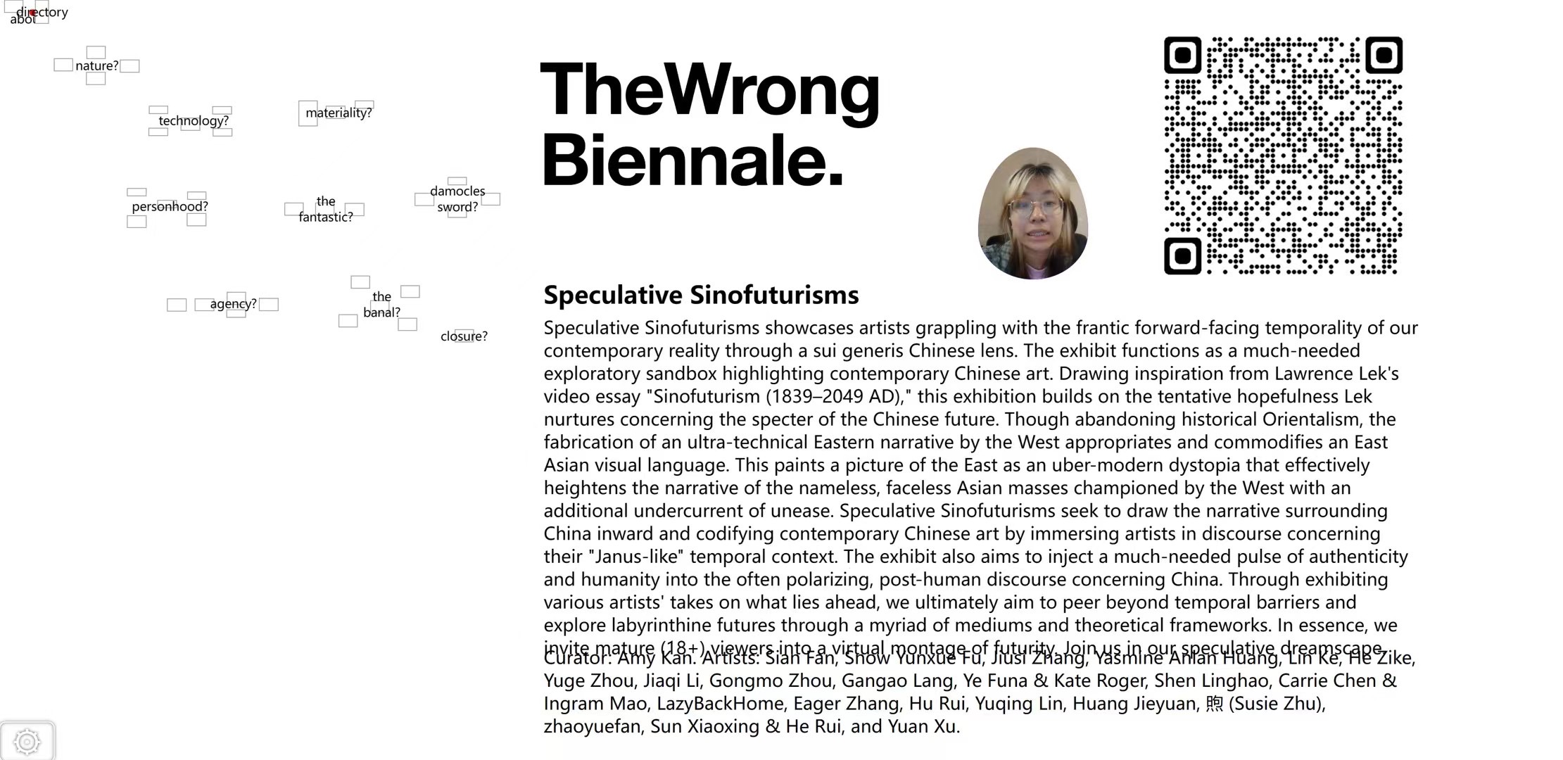 Curated by Amy Kan. Featuring Sian Fan, SnowYunxue Fu, Jiusi Zhang, Yasmine Anlan HuangLin Ke, He Zike, Yuge Zhou, Jiagi Li, GongmoZhou, Gangao Lang, Ye Funa & Kate Roger, ShenLinghao, Carrie Chen & Ingram Mao,LazyBackHome, Eager Zhang, Hu Rui, Yuging LinHuang Jieyuan,煦(Susie Zhu),zhaoyuefan, SunXiaoxing & He Rui, Yuan Xu.